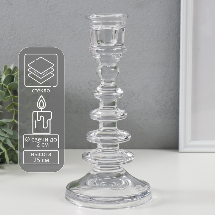 Подсвечник стекло на 1 свечу "Марсельеза" прозрачный 10,5х10,5х25 см