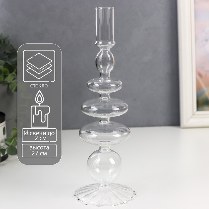 Подсвечник стекло на 1 свечу "Морбиан" прозрачный 27х8,5х8,5 см