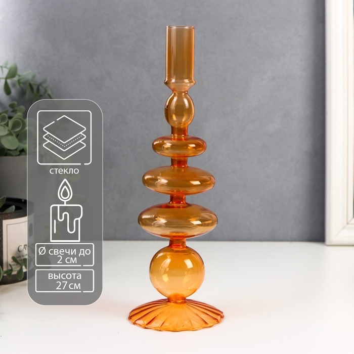 Подсвечник стекло на 1 свечу "Морбиан" прозрачный оранж 27х8,5х8,5 см