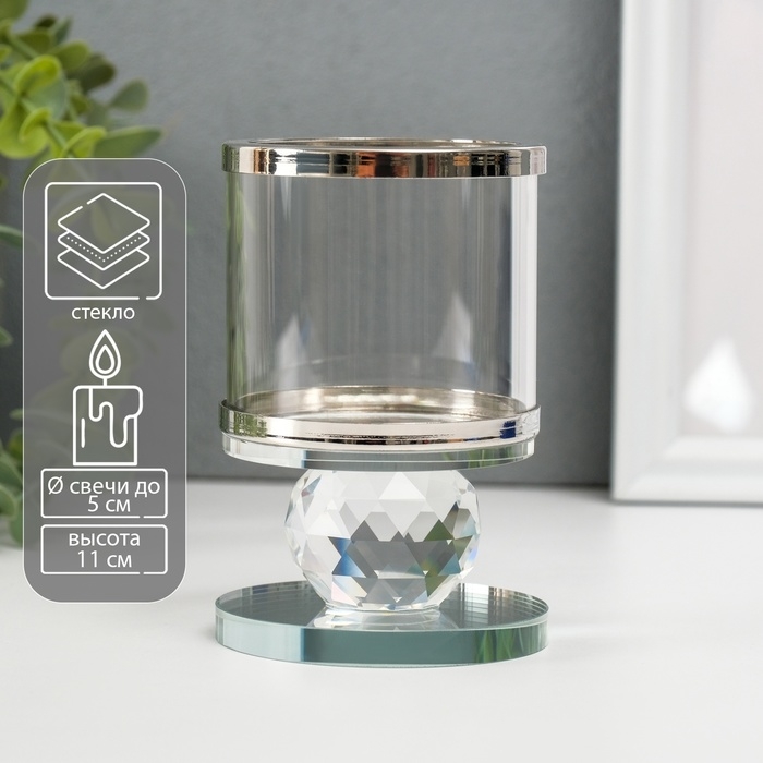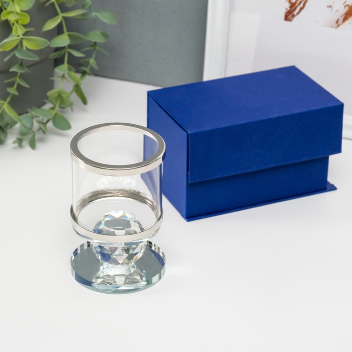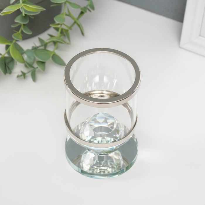 Подсвечник стекло на 1 свечу "Стаканчик на кристалле" прозрачный 11х7х7 см