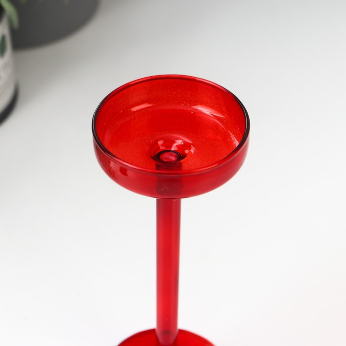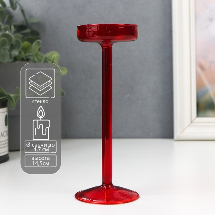Подсвечник стекло на 1 свечу "Высокая ножка" красный d до 6 см 16,5х6х6 см