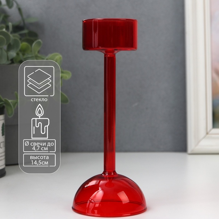 Подсвечник стекло на 1 свечу "Высокая ножка на шаре" красный d до 4,7 см 14,5х6,5х6,5 см