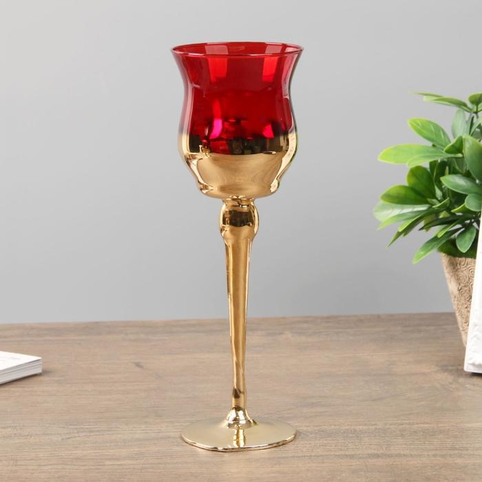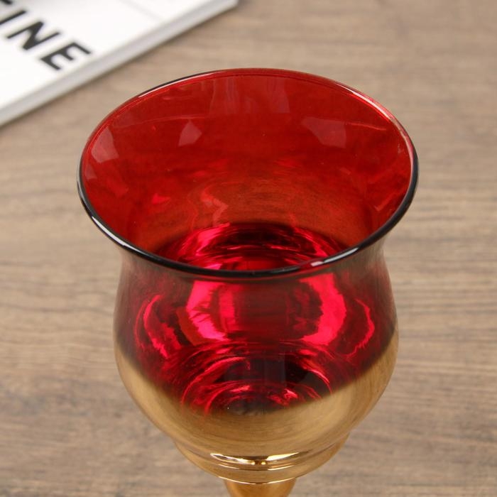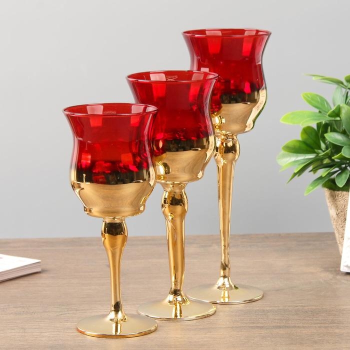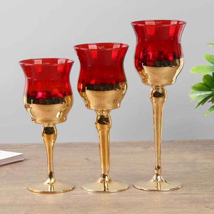 Подсвечник стекло набор 3 шт "Бокалы" высота 18, 20, 22,5 см красный 22,5х7,8х7,8 см