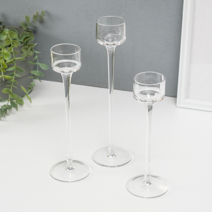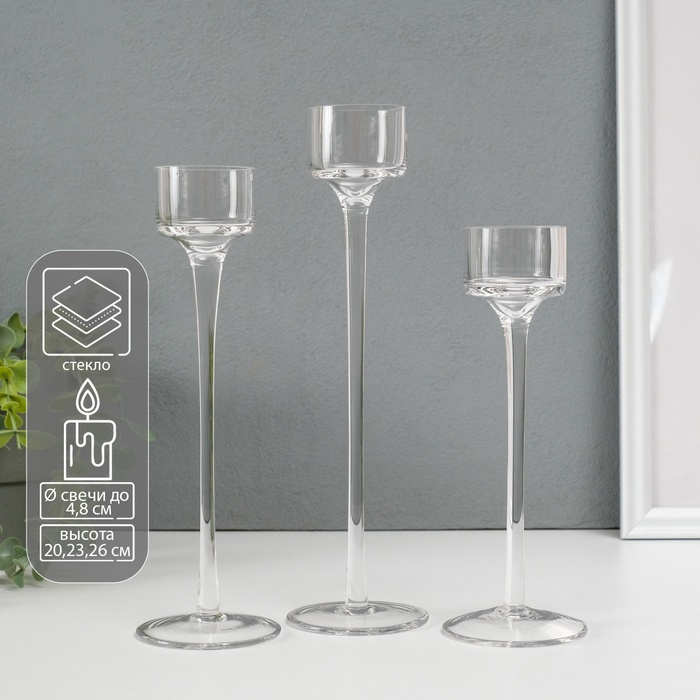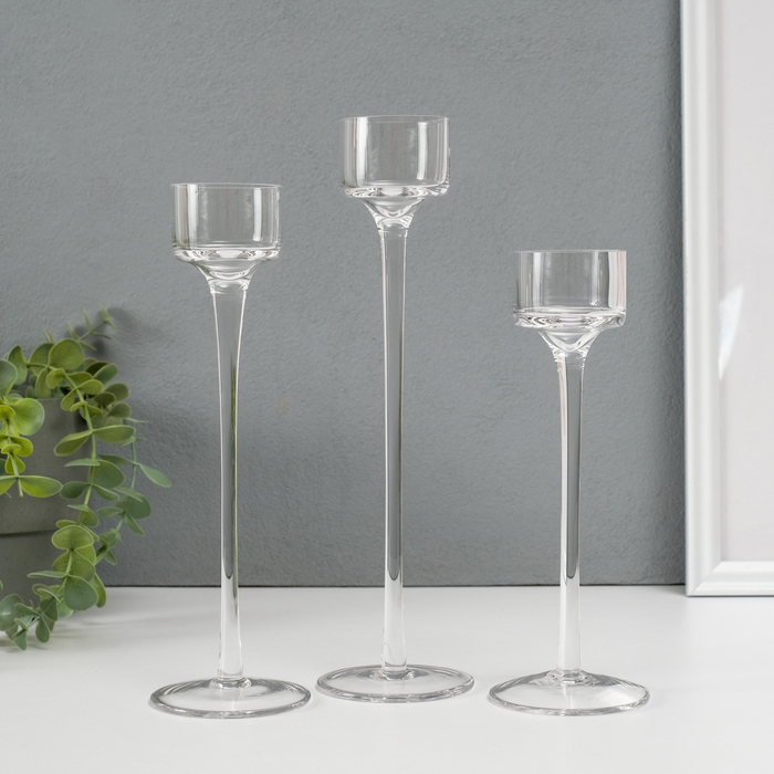Подсвечник стекло набор 3 шт "Прозрачность мыслей" высота 26см, 23 см, 20 см прозрачный