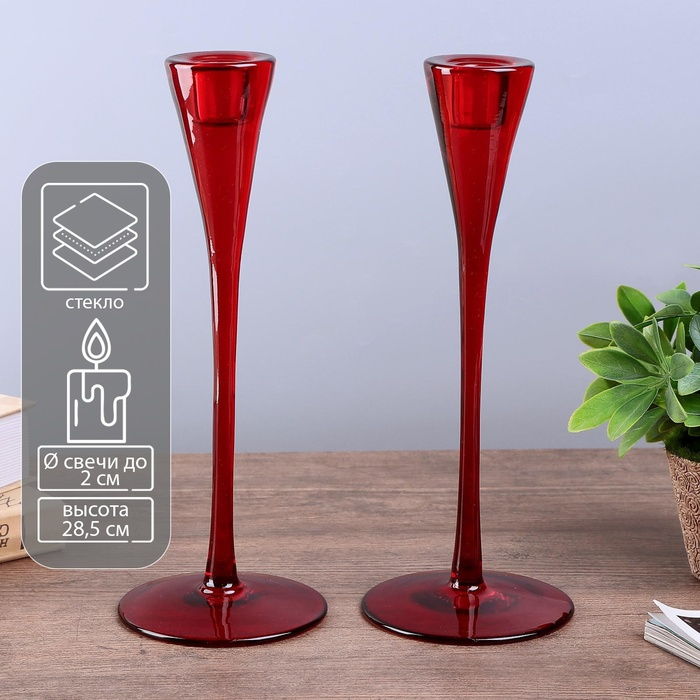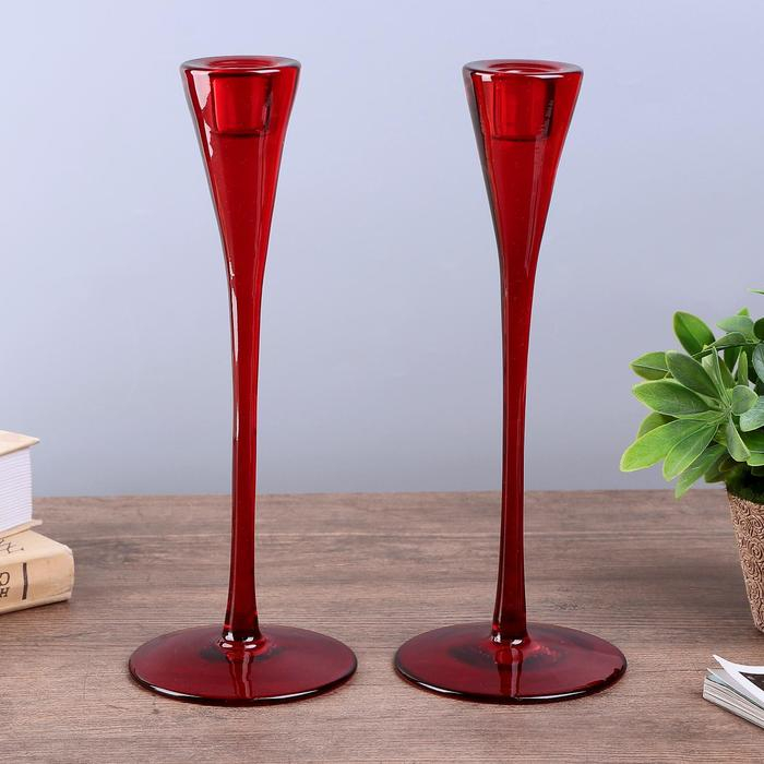 Подсвечник стекло "Узкий бокал" красный набор 2 шт 28,5х10,5х10,5 см