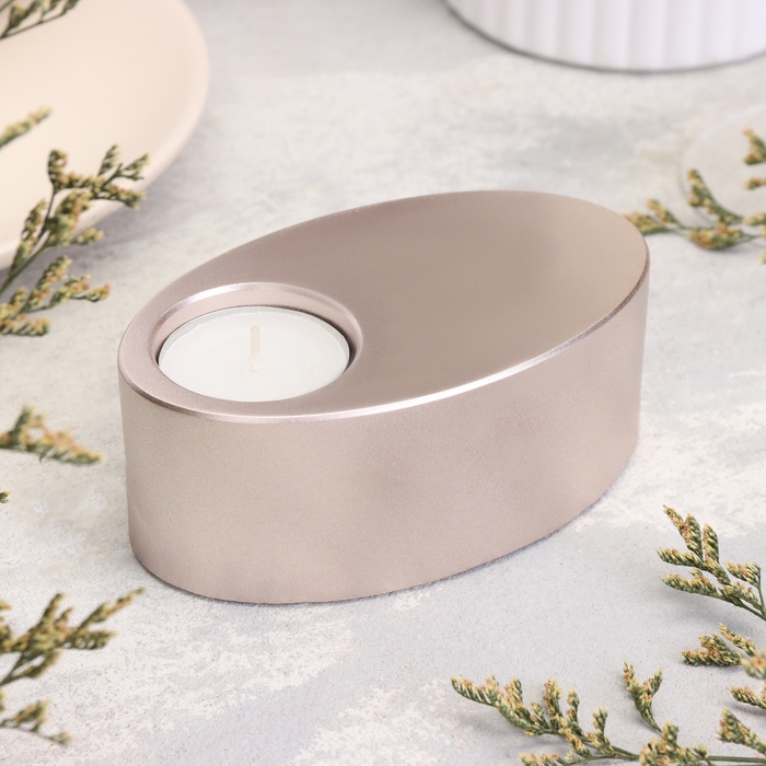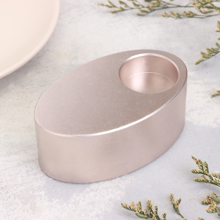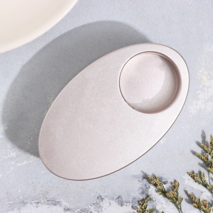 Подсвечник "Узкий овал. Мрамор" из гипса,11,5х7х4см,шампань