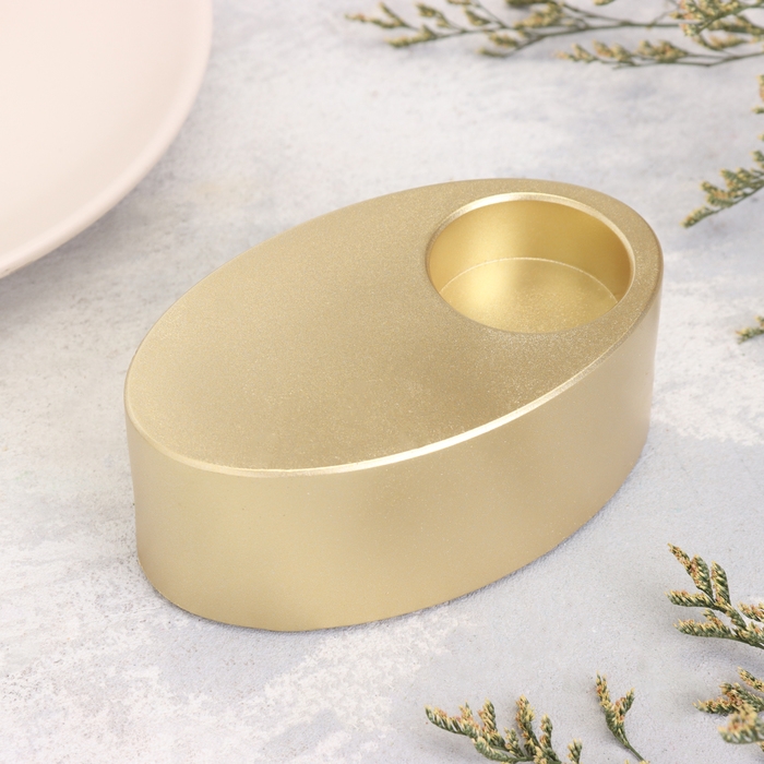Подсвечник "Узкий овал. Мрамор" из гипса,11,5х7х4см, золото