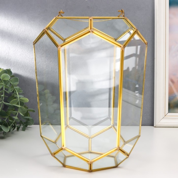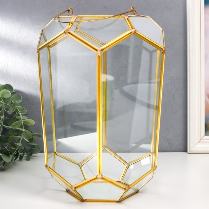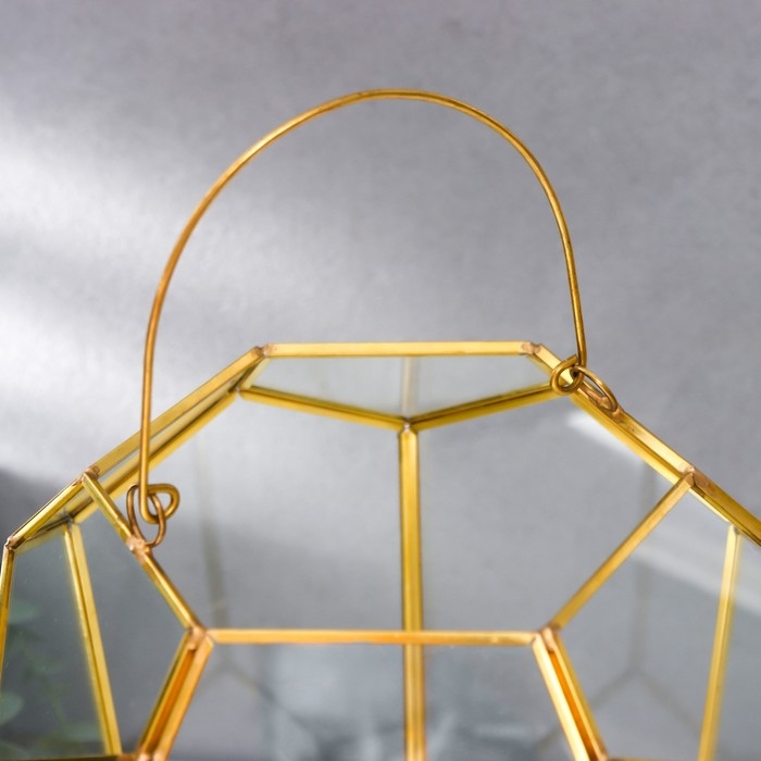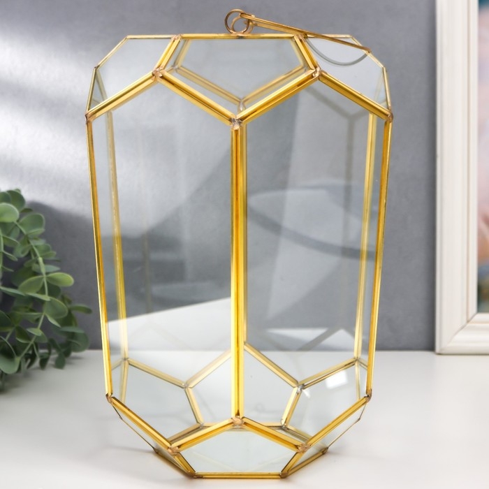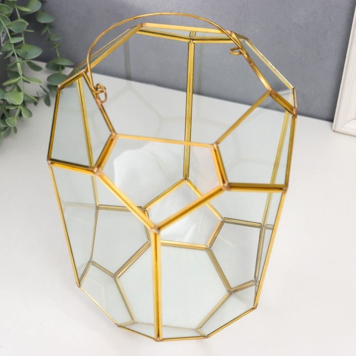 Подсвечник-ваза стекло металл на 1 свечу "Пятиугольные грани" золото, с ручкой 26х18х20 см