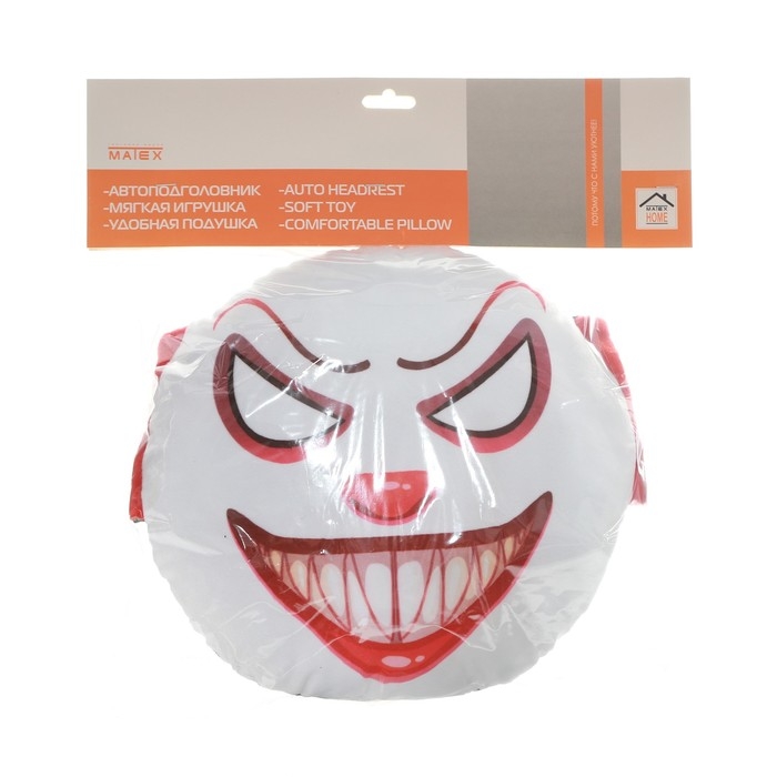 Подушка на подголовник с клоуном - это забавный и функциональный аксессуар для вашего автомобиля. Размер подушки составляет 30 x 30 x 10 см, что позволяет удобно разместить ее на подголовнике сиденья. Дизайн выполнен в виде страшного клоуна, создавая уникальный и запоминающийся образ.