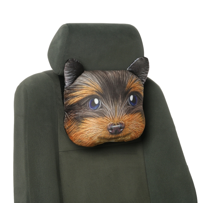 Подушка на подголовник в виде щеночка - это забавный и функциональный аксессуар для автомобиля. Размеры подушки составляют 30x25x10 см, а крепится она на резинке к подголовнику сиденья.