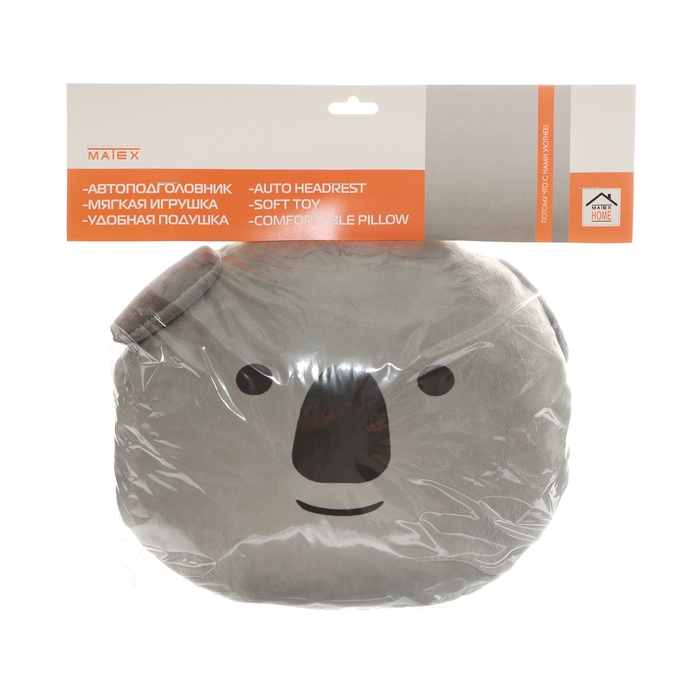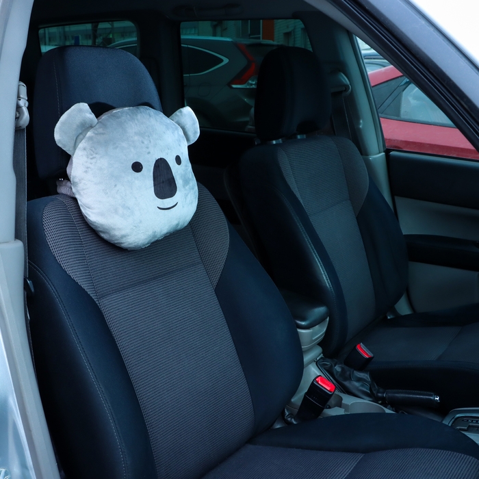 Подушка на подголовник в виде коалы - это забавный и функциональный аксессуар для автомобиля. Размеры подушки составляют 33x31x10 см, а крепится она на резинке к подголовнику сиденья.
