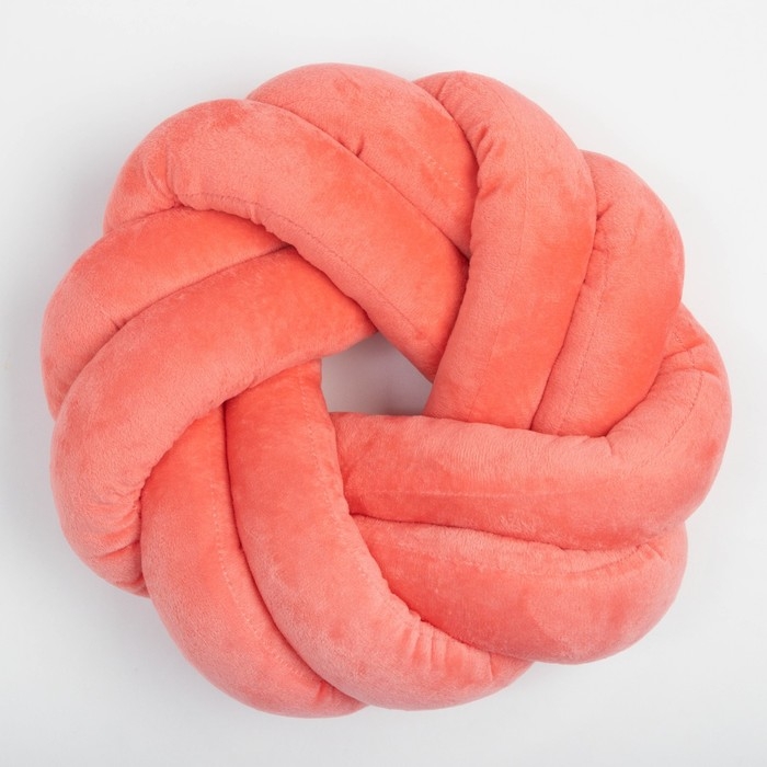 Подушка-узел Этель, d=33см, цв. коралловый, велюр