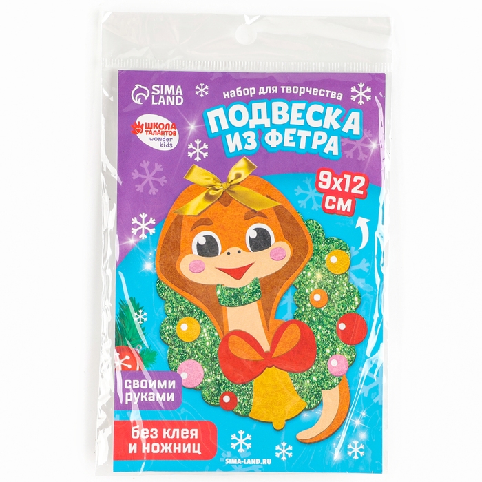 Подвеска из фетра на новый год своими руками «Змея с венком», новогодний набор для творчества