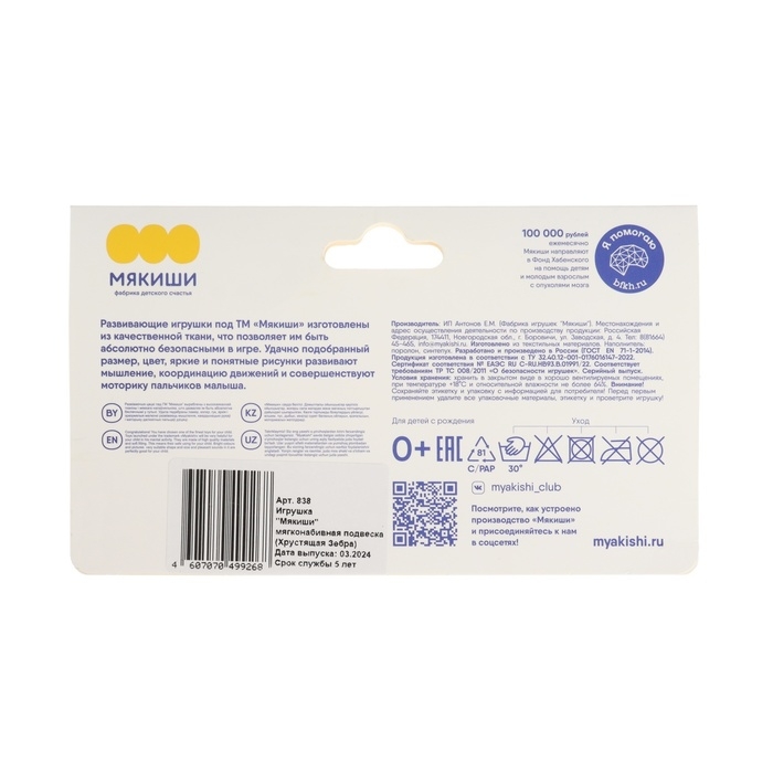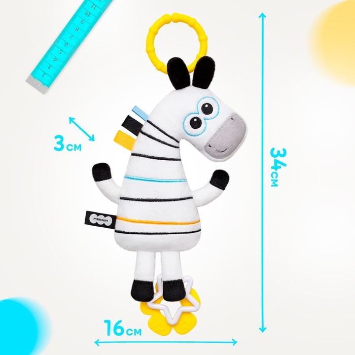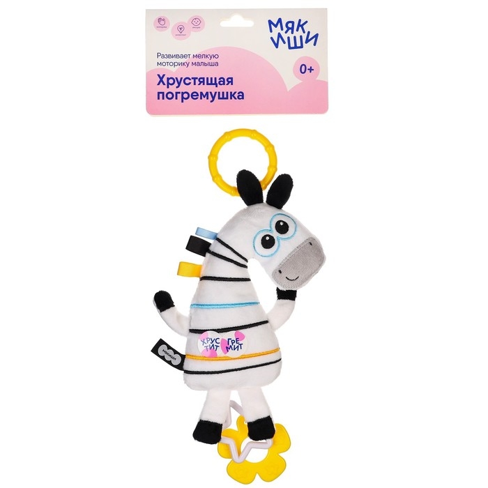 Подвеска мягконабивная «Зебра Хрустящая», погремушка, прорезыватель, шуршит, Мякиши