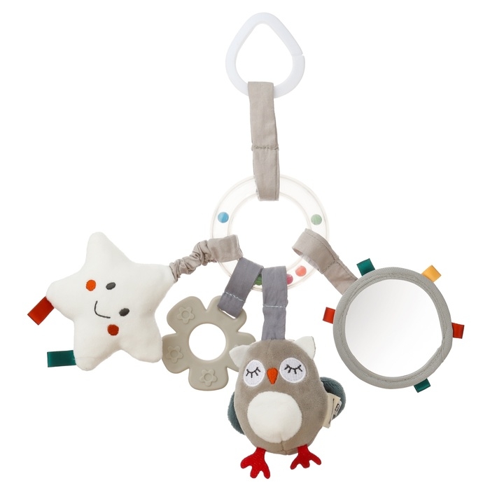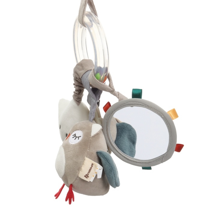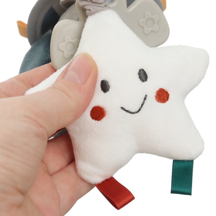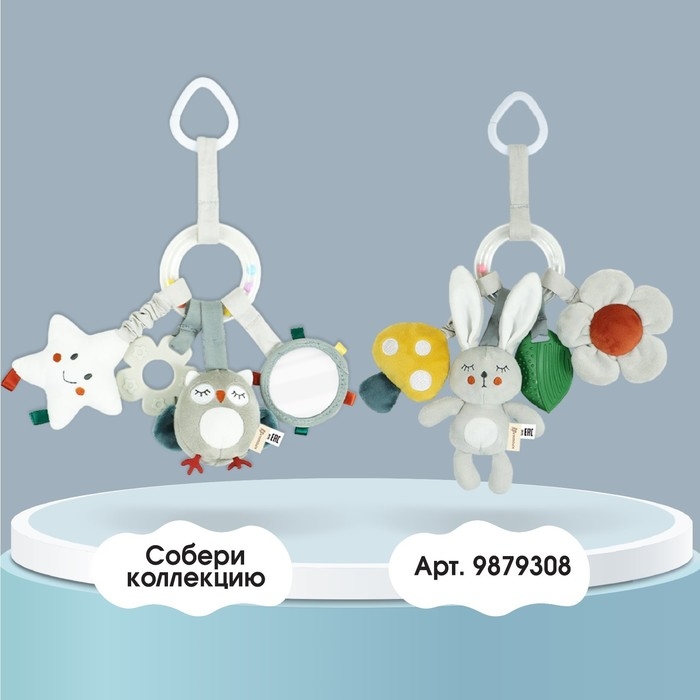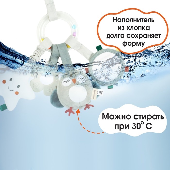 Удобный универсальный крепеж в виде кольца позволяет закрепить подвеску на коляску, кроватку или детское автокресло. Товар сертифицирован.