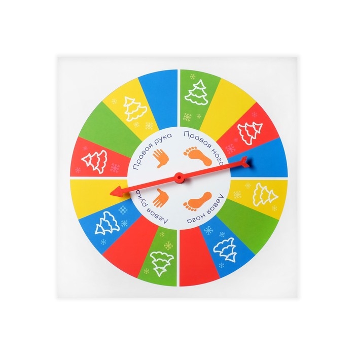 Ведущий раскручивает рулетку — стрелка укажет на цвет и часть тела игрока. Например, ведущий объявляет: «Левая рука на красное». Значит, игроку нужно поставить левую руку на любой красный кружок игрового поля. Затем ведущий вновь раскручивает рулетку и даёт задание следующему участнику.