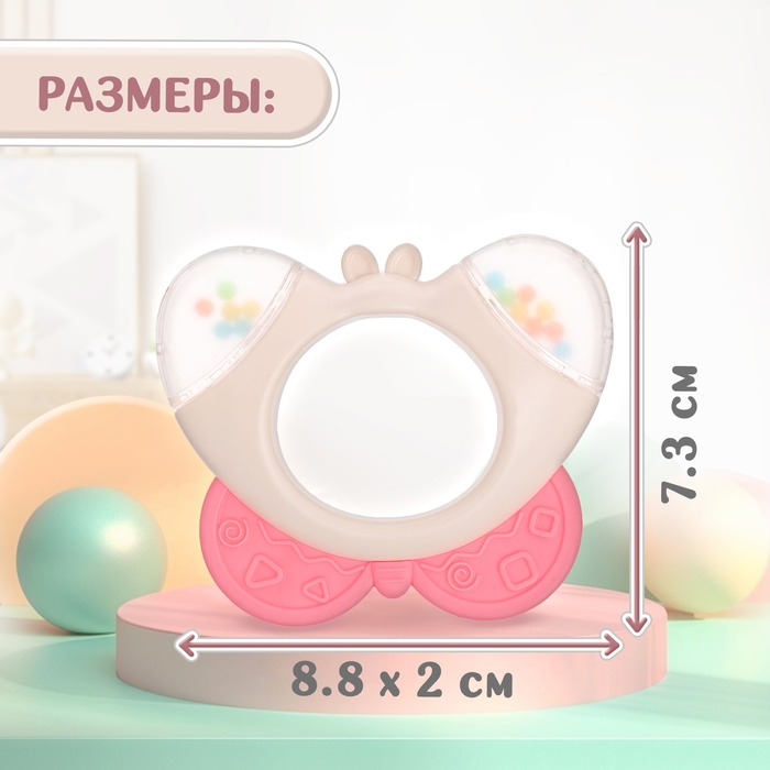 Погремушка «Бабочка», с прорезывателем для зубов, пищевой силикон
