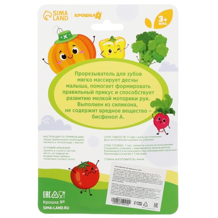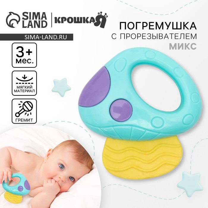 Погремушка с прорезывателем «Овощной МИКС, Крошка Я: Грибочек», цвет МИКС, Крошка Я