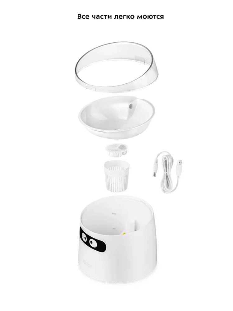 Фонтанчик для животных Kitfort KT-4050 — это устройство, обеспечивающее чистой, не застоявшейся водой ваших питомцев. Водяной насос перекачивает воду из внутреннего резервуара в чашу для питья, откуда вода стекает обратно в резервуар. Когда капли воды выходят из фонтанчика и падают в чашу, происходит обогащение воды кислородом, что предотвращает застаивание воды.
