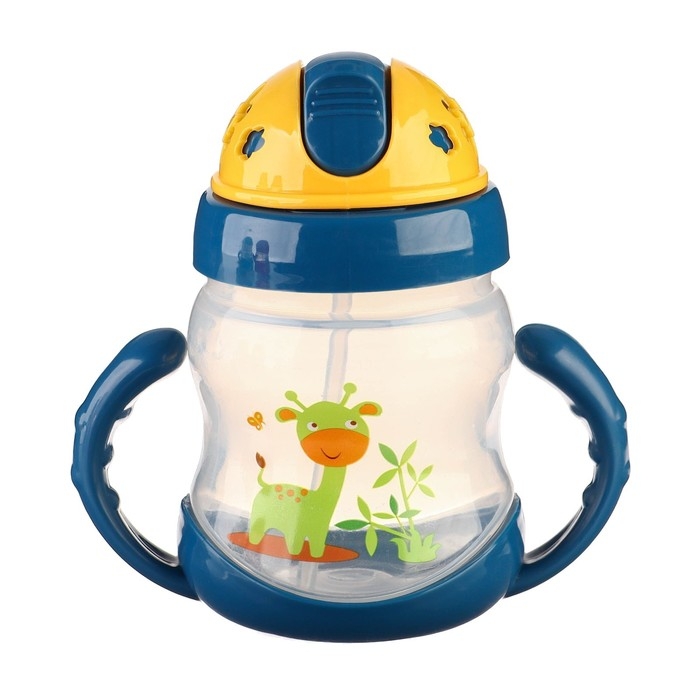 Поильник - непроливайка детский с силиконовой трубочкой, 250 мл., с ручками, цвет голубой