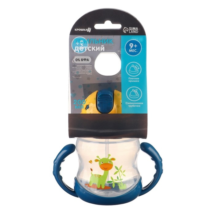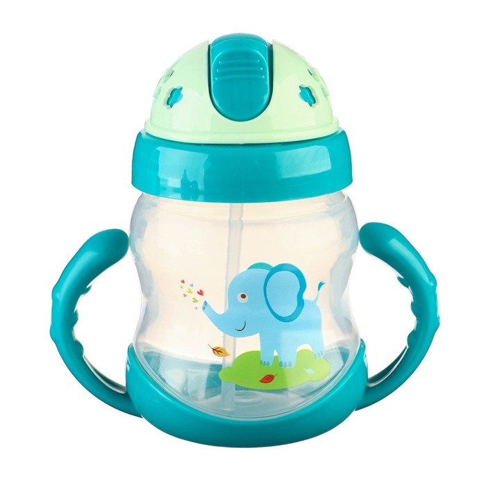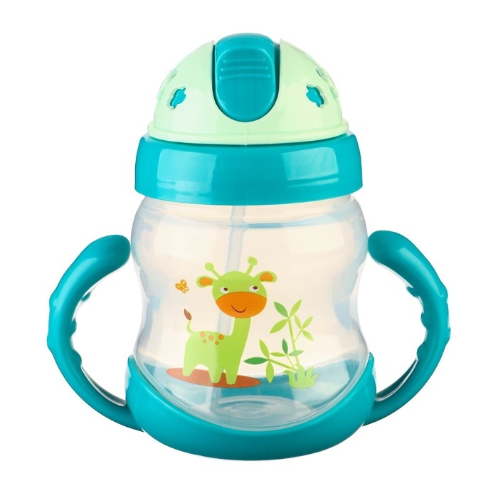 Поильник детский с силиконовой трубочкой, 200 мл., с ручками, цвет МИКС