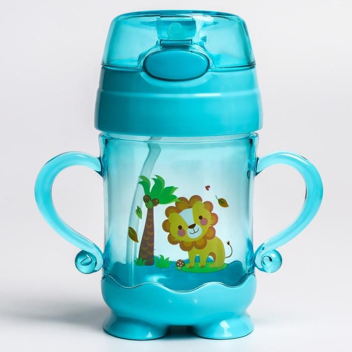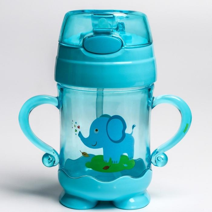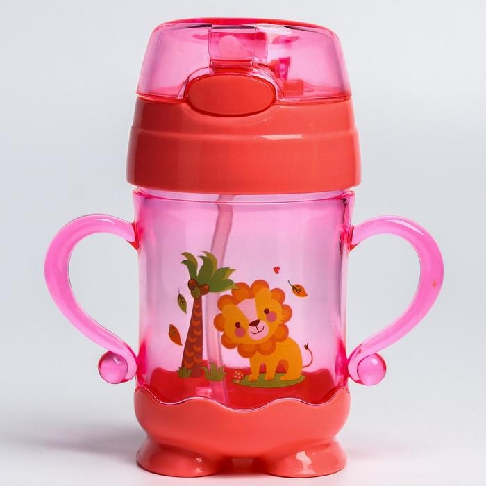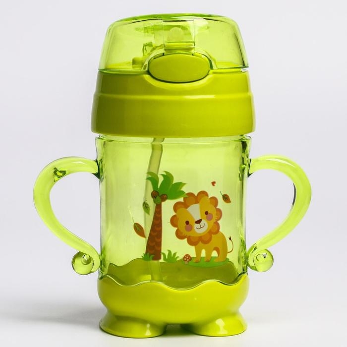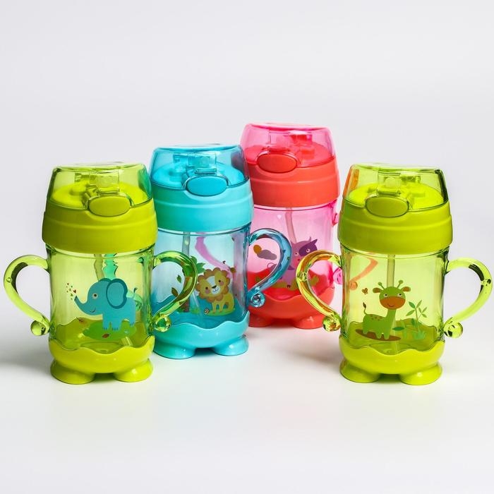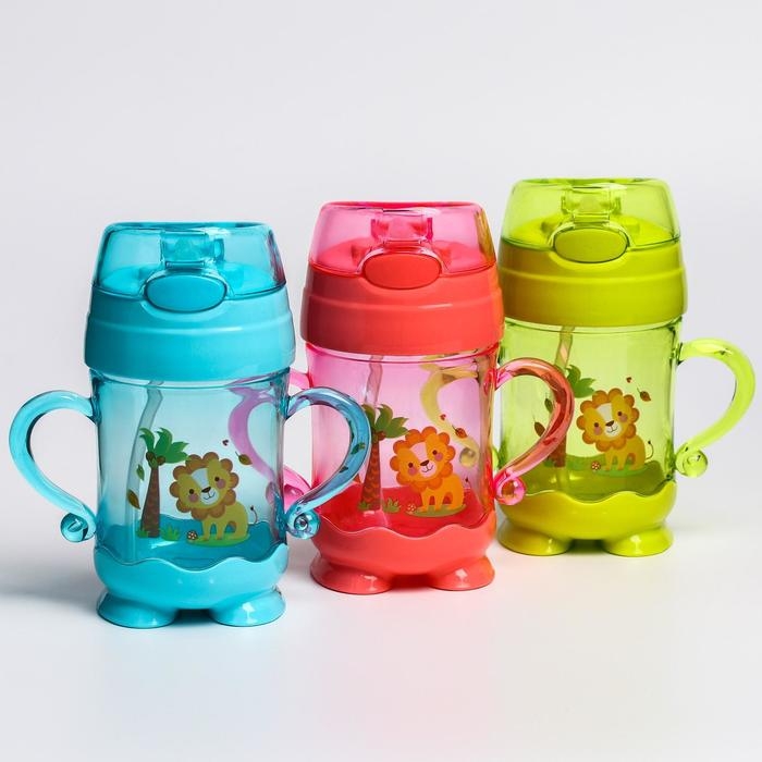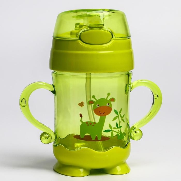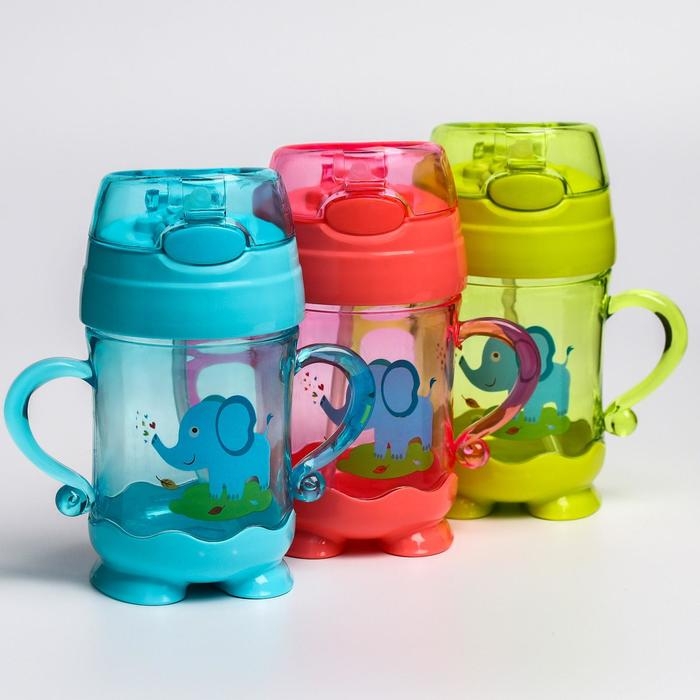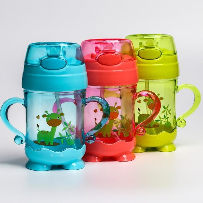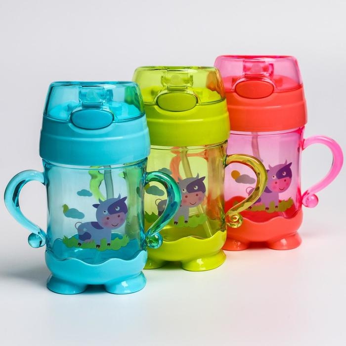 Поильник детский с силиконовой трубочкой, 220 мл., с ручками, цвета МИКС