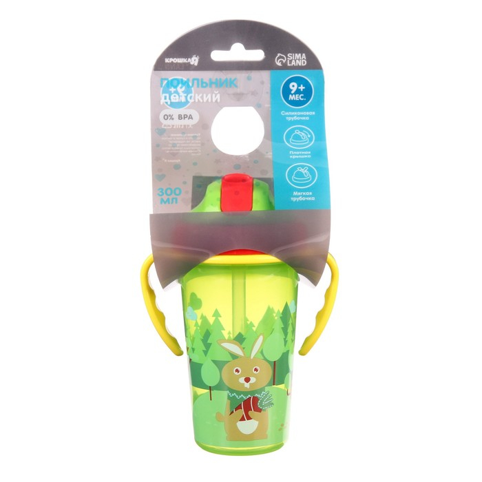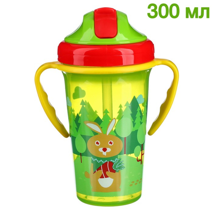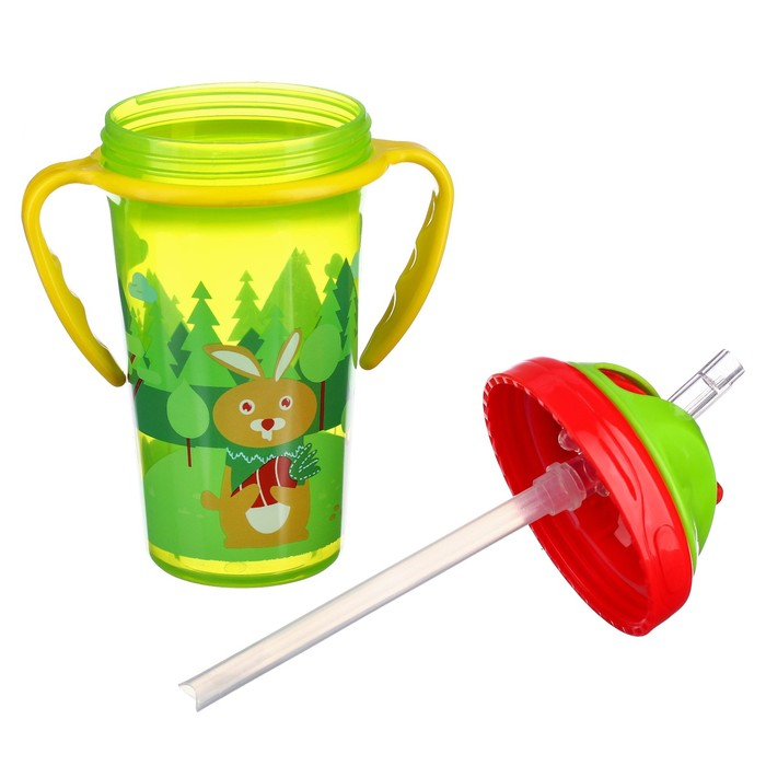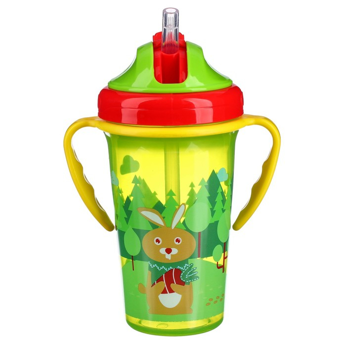 Поильник детский с силиконовой трубочкой, 300 мл., с ручками, цвет зеленый