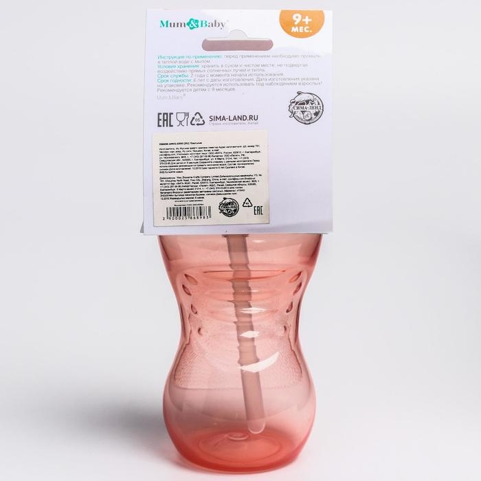 Поильник детский с силиконовой трубочкой, 340 мл., цвета МИКС