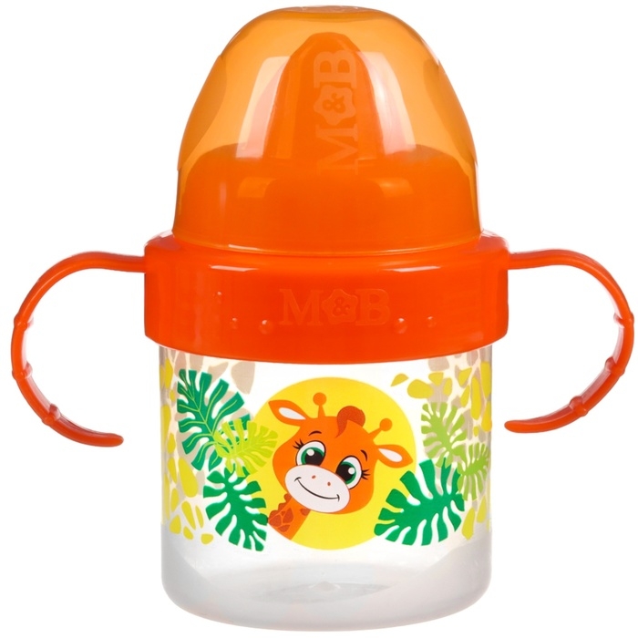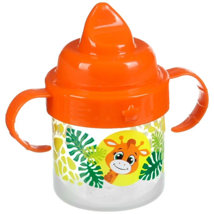 Поильник детский с твёрдым носиком «Жирафик», 140 мл., с ручками, цвет оранжевый