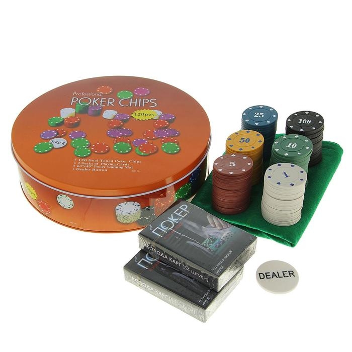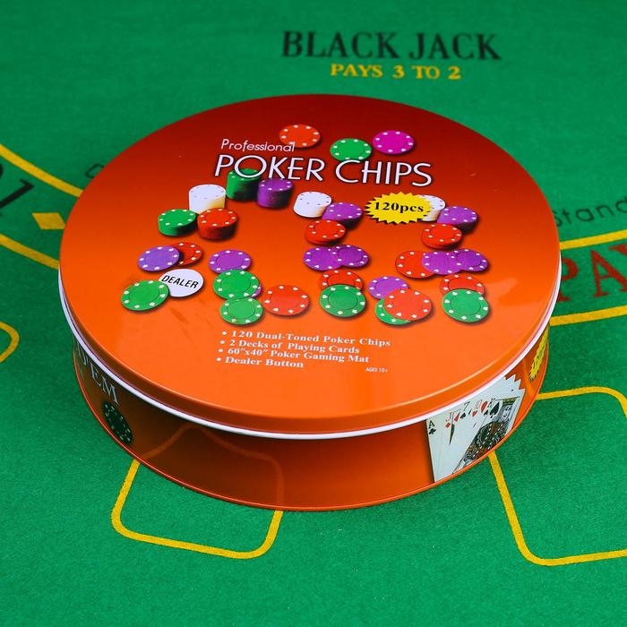 Покер, набор для игры (карты 2 колоды, фишки 120 шт.), с номиналом, 40 х 60 см
