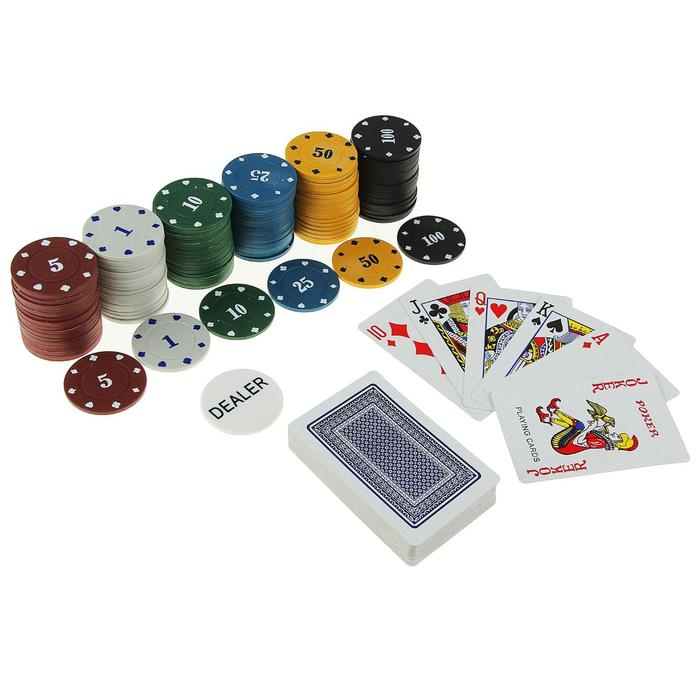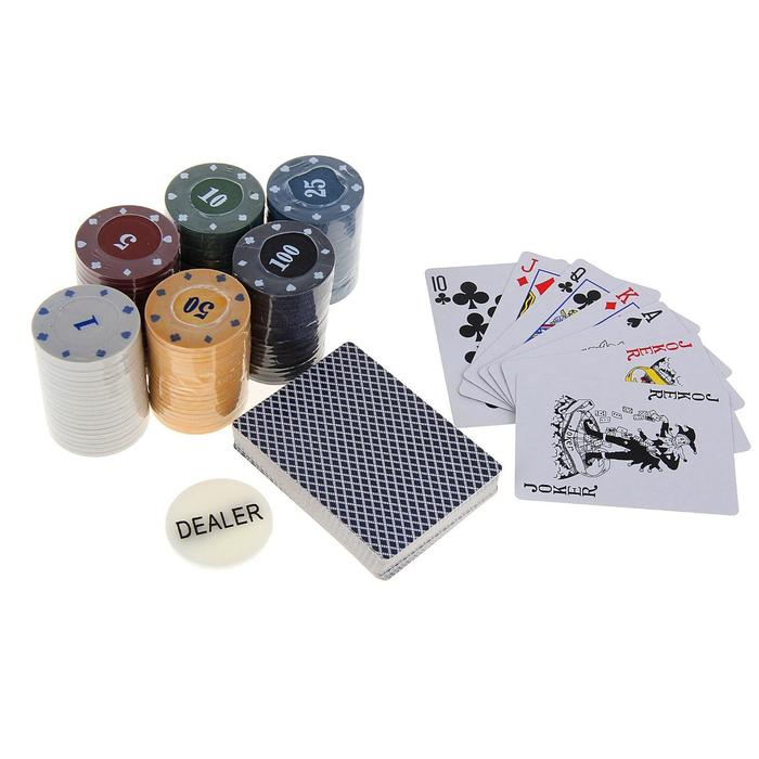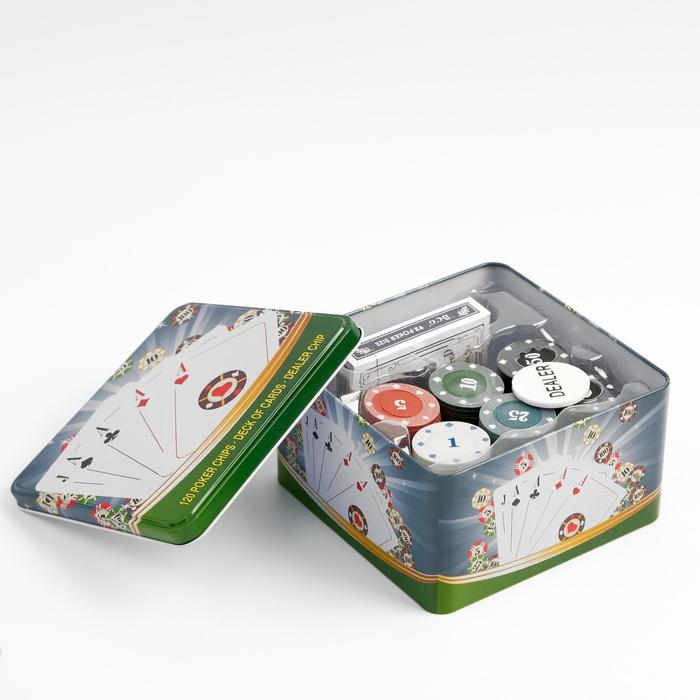 Покер, набор для игры (карты 54 шт, фишки 120 шт.), с номиналом, 15 х 15 см