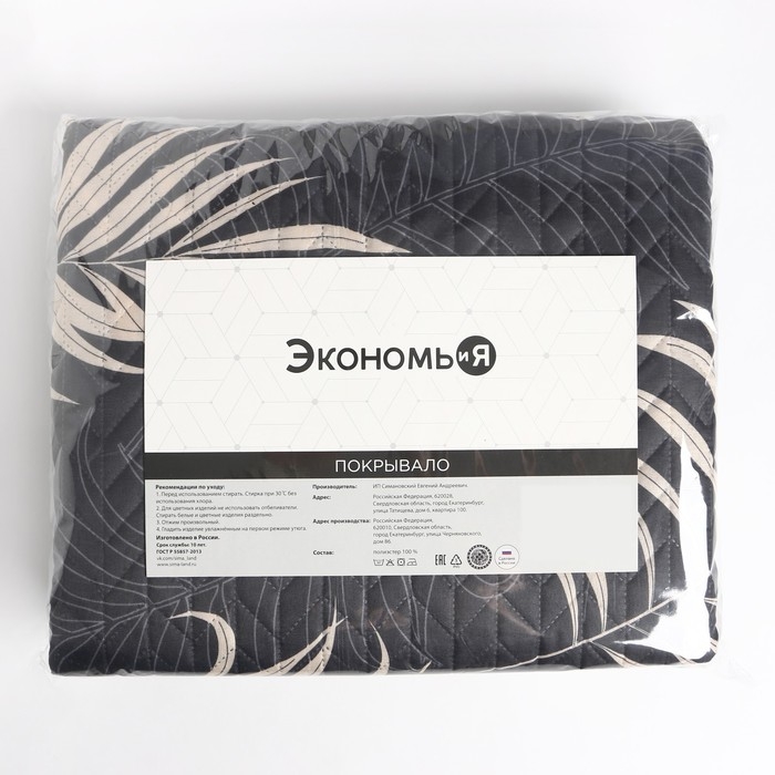 Покрывало евро макси Экономь и Я "Пальмовые листья" 240*210±5см, 100% полиэстер, 190гр/м2