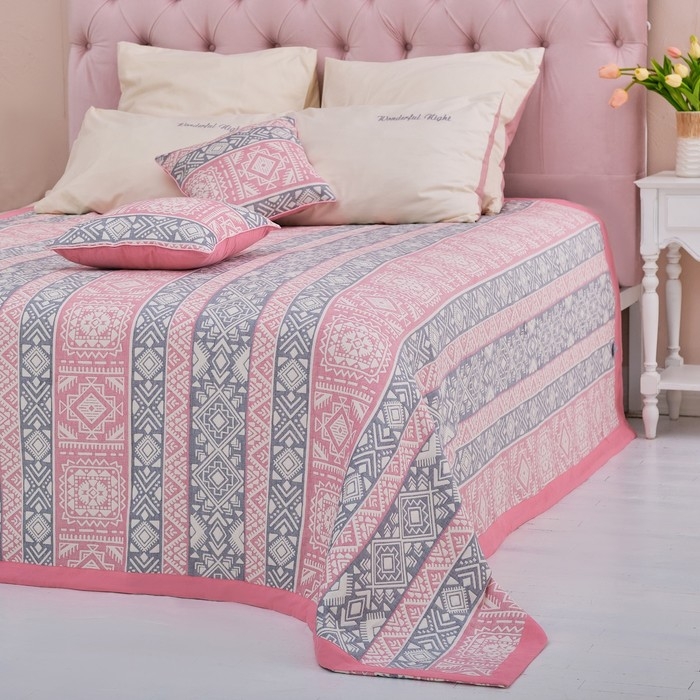 Покрывало хлопковое Этель «Инди» 180х240±5 см, цвет серо-розовый, 100%хлопок, 300гр/м2