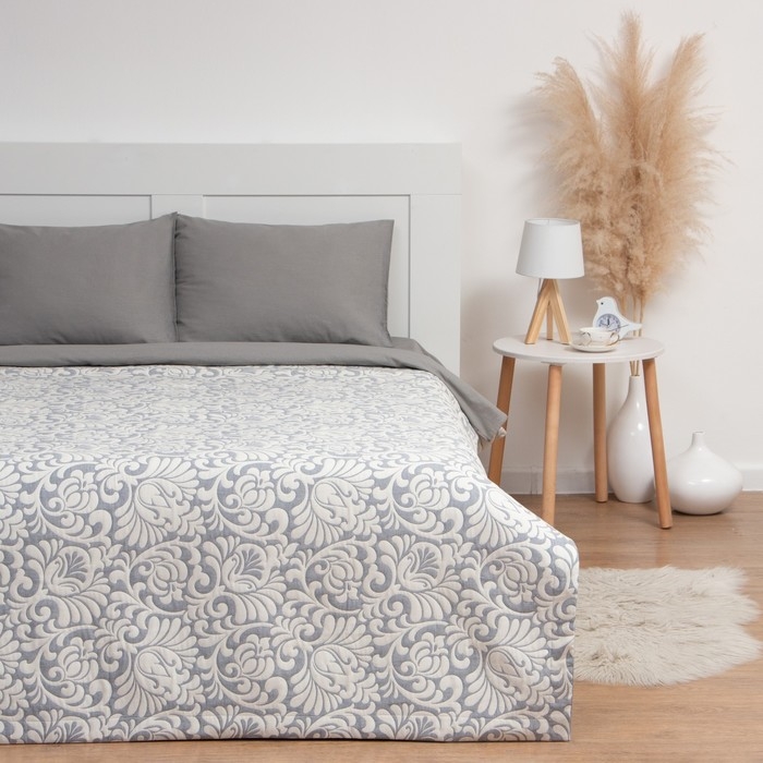 Покрывало хлопковое Этель «Узоры» 200х240±5 см, цвет серый, 100%хлопок, 300гр/м2
