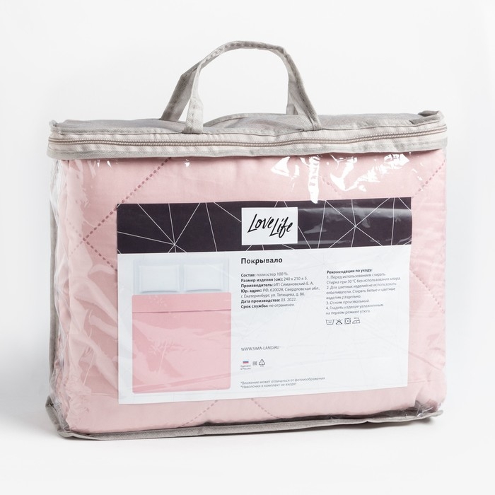 Покрывало LoveLife 2 сп 180х210±5 см, цвет розовый, микрофайбер, 100% п/э