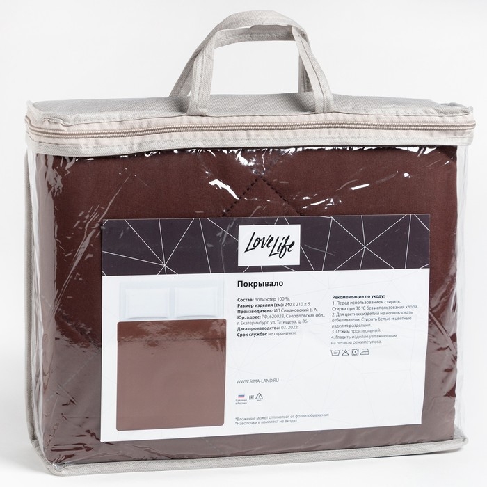 Покрывало LoveLife Евро 200х210±5 см, цвет темно-коричневый, микрофайбер, 100% п/э