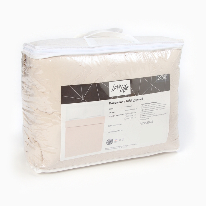 Покрывало LoveLife Tufting: Ромб цв.бежевый, 150*220±5см, микрофайбер, 100% п/э