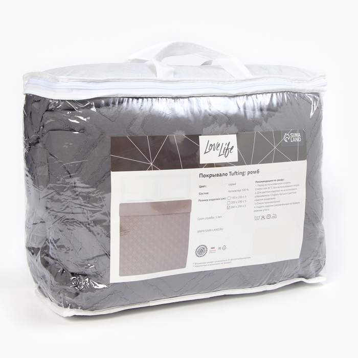 Покрывало LoveLife Tufting: Ромб цв.серый, 200*230±5см, микрофайбер, 100% п/э
