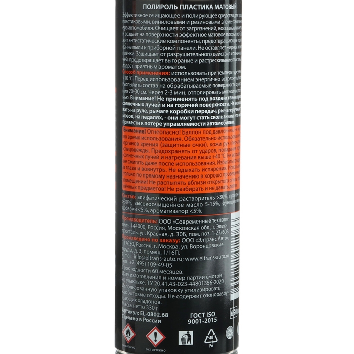 Полироль пластика Элтранс, матовый, ваниль, 650 мл