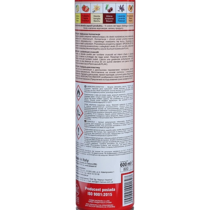 Полироль пластика Plak Вишня, аэрозоль, 600 мл