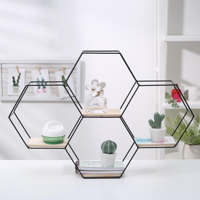 Полка 2-х ярусная Доляна «Лофт», 41×59×9,5 см, цвет чёрный