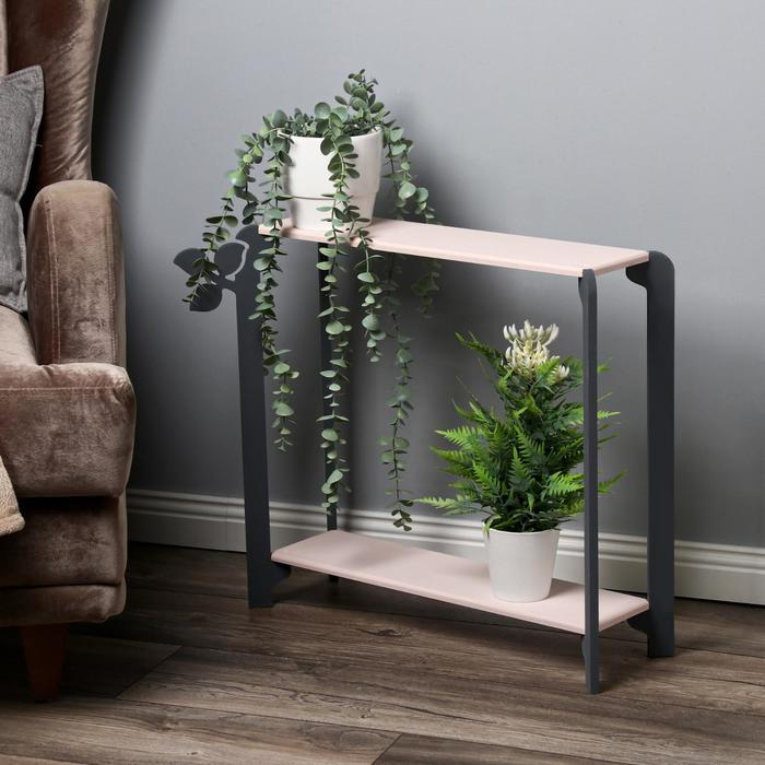 Полка для цветов двухъярусная "Флора" 49х59х23 см, Серо-розовый