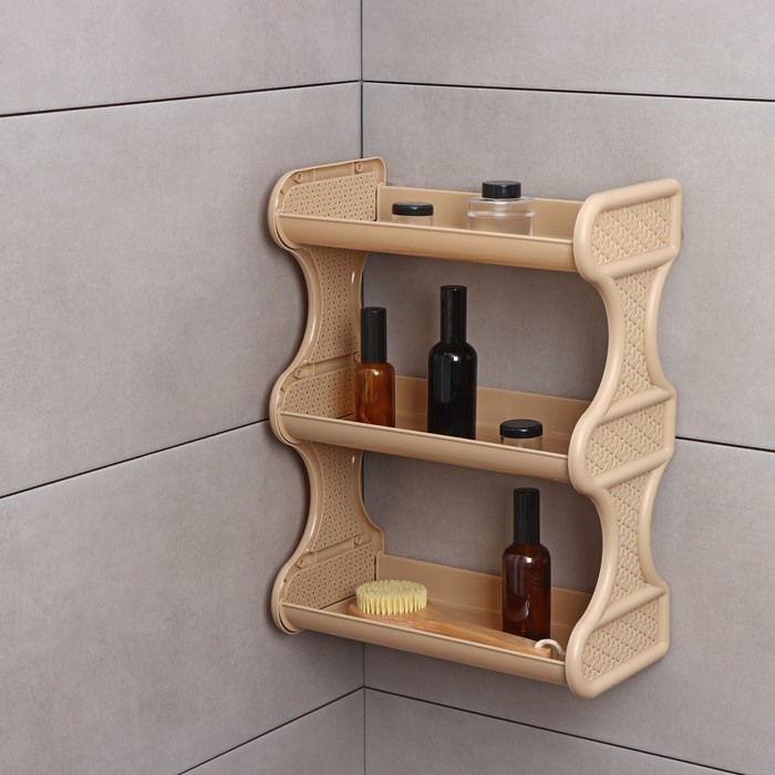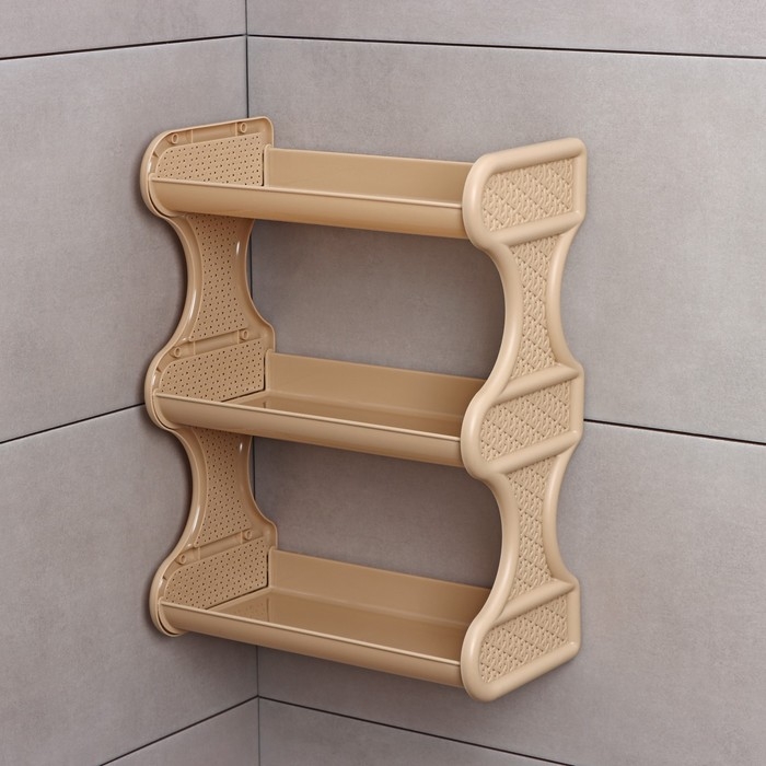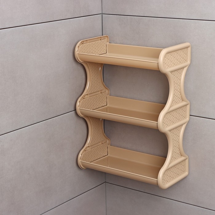 Полка для ванной комнаты Rattan, 3-х ярусная, 32×17×41,8 см, цвет морской песок