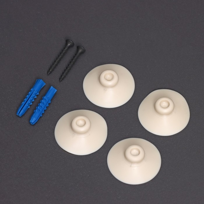 Полка оснащена двумя видами креплений, которые входят в комплект: саморезы и присоски.