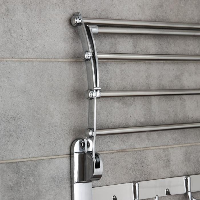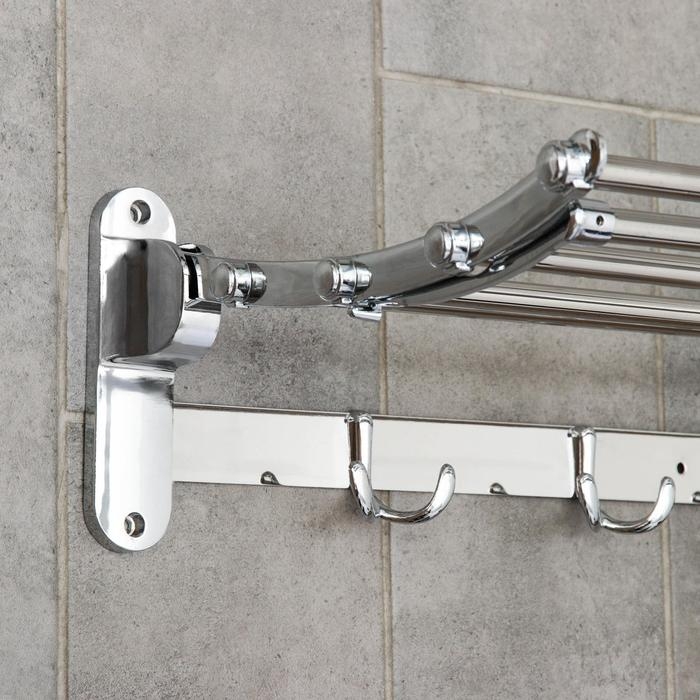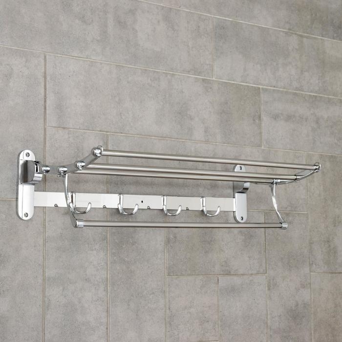 Полка откидная с держателем полотенец, 4 двойных крючка, 59,5×26×14 см, цвет хром