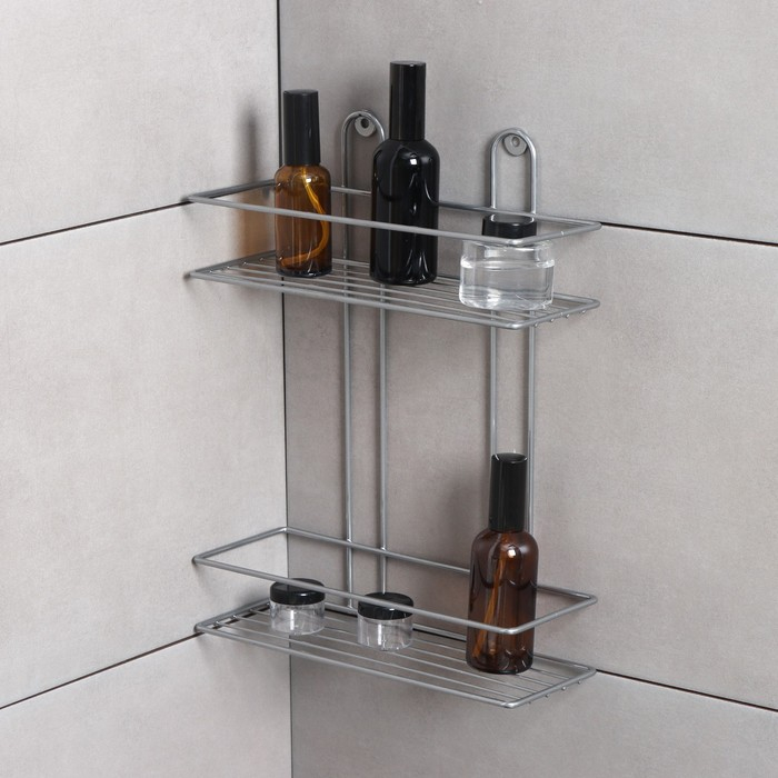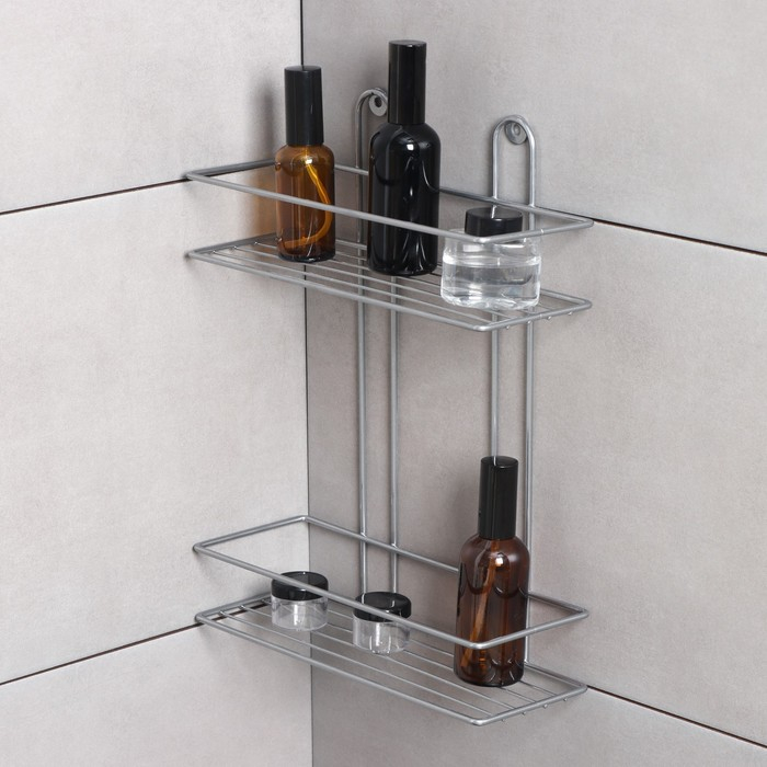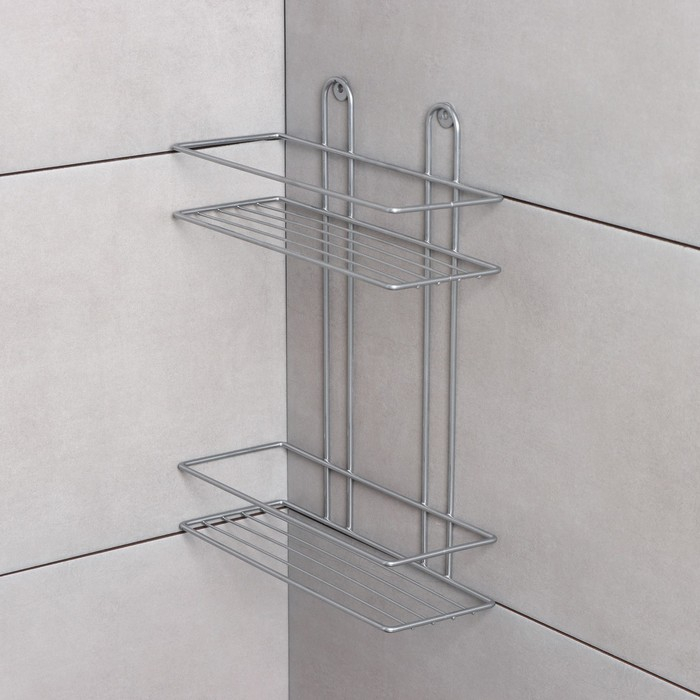 Полка прямоугольная 2-х ярусная, 26,5×10,5×35 см, цвет хром