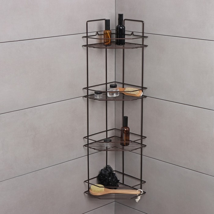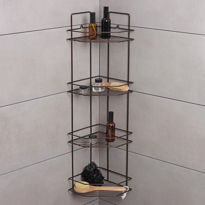 Полка угловая для ванной 4-х ярусная Эконом, 219×219×836 cм, цвет медная искра