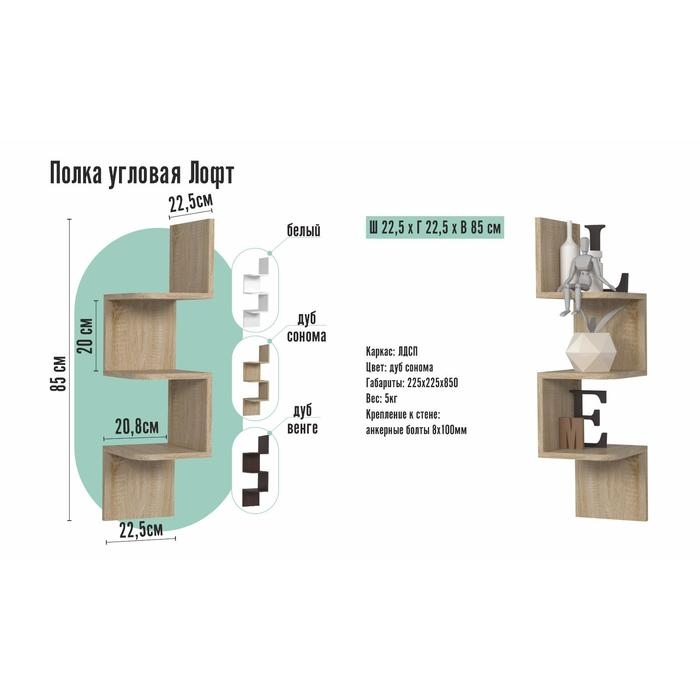 Полка угловая ЛОФТ, 225х225х850, Дуб сонома