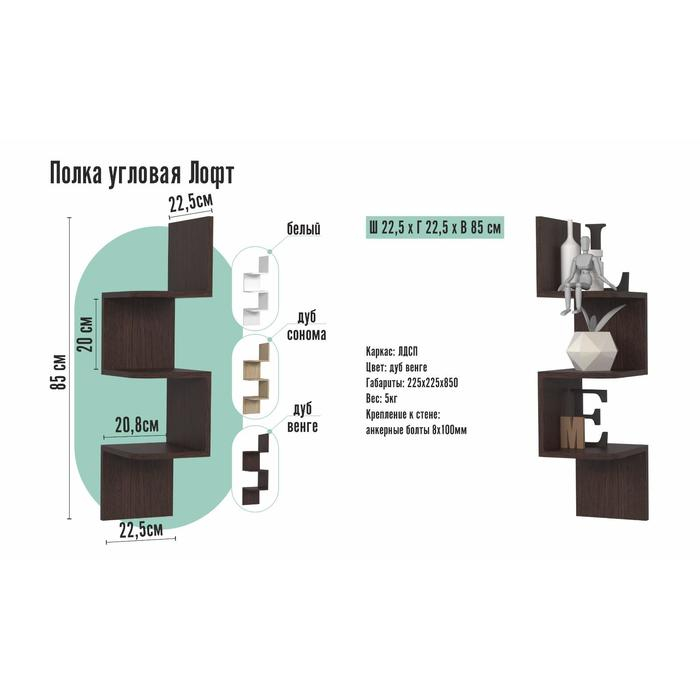 Полка угловая ЛОФТ, 225х225х850, Венге