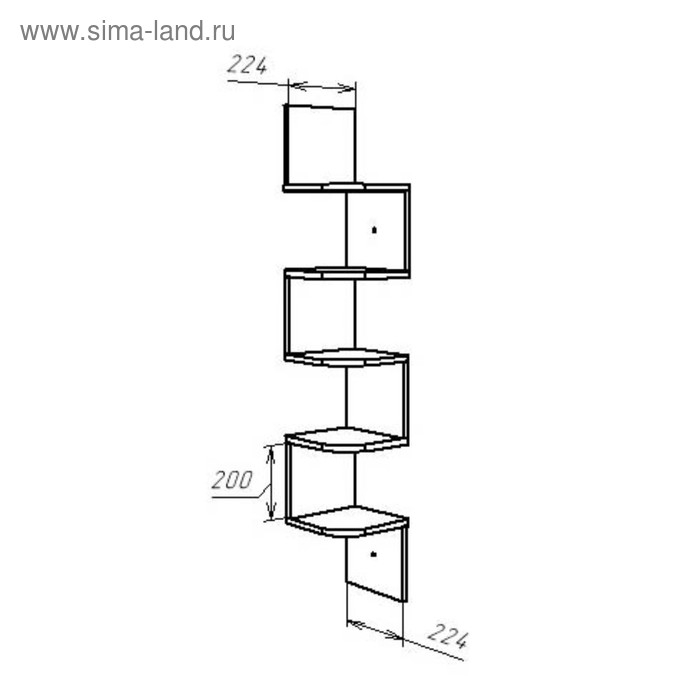 Полка угловая навесная Лофт, 224х224х1280, Белый